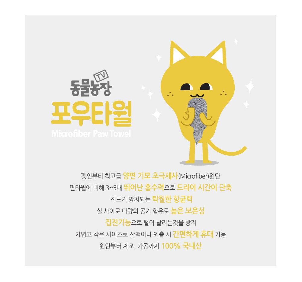 아이들이 좋아하는 부드럽고 포근한 느낌의 반려동물 전용 타월이예요.